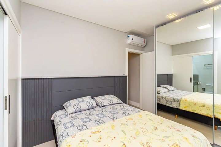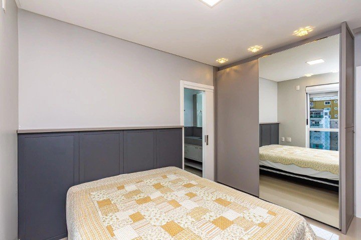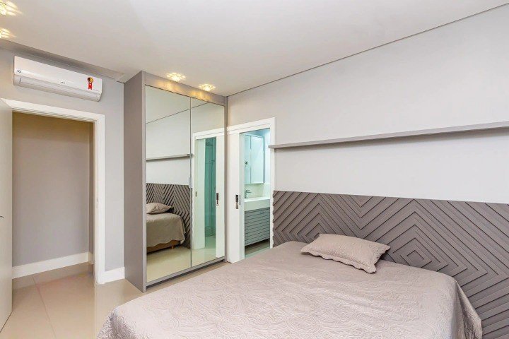 O apartamento também oferece o privilégio de uma suíte master, onde o requinte se encontra com o relaxamento. Dotada de hidromassagem e uma atmosfera de serenidade, esta suíte proporciona um refúgio ideal para recarregar as energias e desfrutar de momentos de autêntico bem-estar.