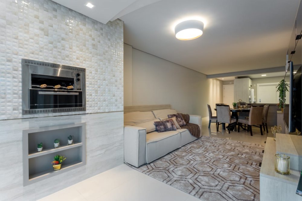 Com uma generosa área privativa de 128,04 m², o imóvel oferece um amplo living, perfeitamente integrado às áreas de jantar e estar, criando um ambiente perfeito para receber familiares e amigos.