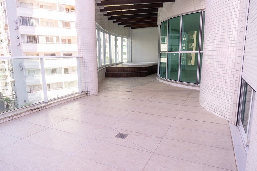 Características adicionais incluem: localização a 300 metros do mar, piso porcelanato, aquecimento a gás, ar condicionado, área de serviço, armários planejados na cozinha e nos quartos, banheiro social, churrasqueira, closet, cozinha, dependência de empregada, escritório, espera para ar condicionado split, sala de estar, sala de jantar, varanda, varanda gourmet e vista panorâmica.