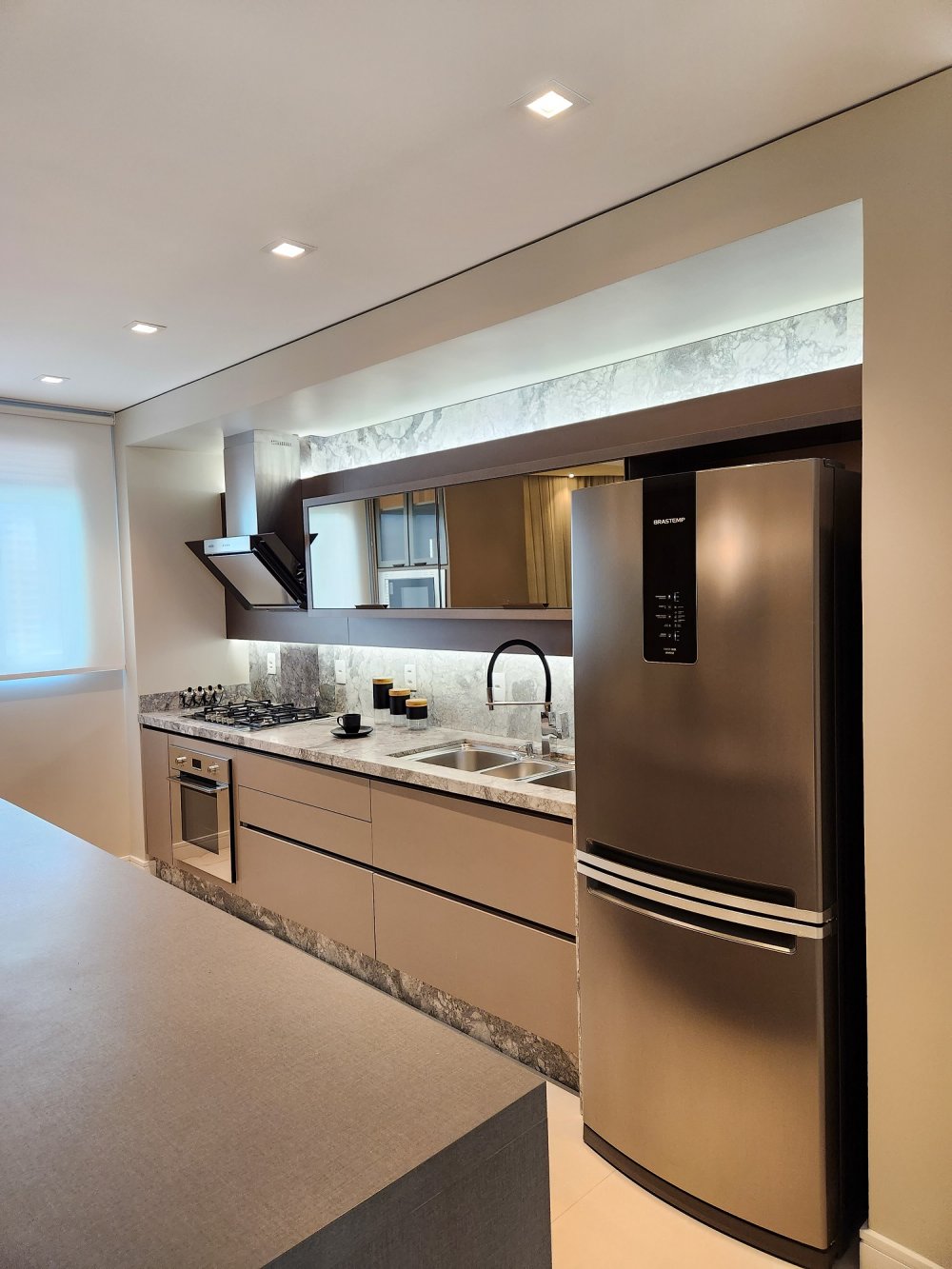 A cozinha integrada é perfeita para preparar suas refeições favoritas, enquanto a churrasqueira a carvão na sacada integrada proporciona momentos deliciosos de churrasco.