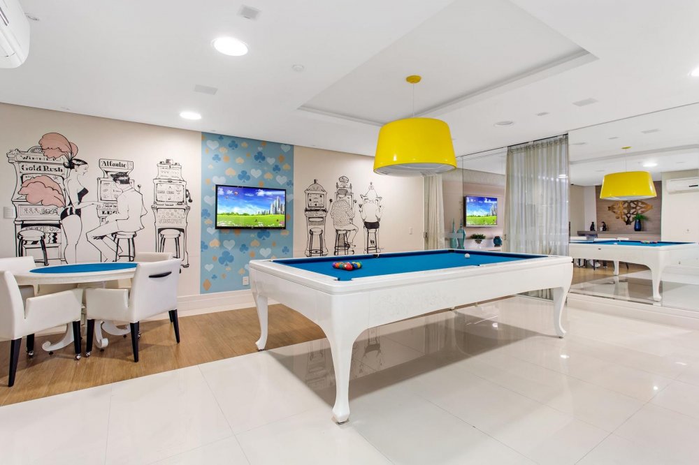 Para os momentos de diversão em família, o edifício oferece uma sala de jogos e um cinema. Os amantes da tecnologia podem usufruir da lan house, enquanto os que buscam relaxamento podem desfrutar do espaço saúde/spa, que conta com sauna úmida e banheira de hidromassagem. O fitness center é perfeito para manter a forma sem precisar sair de casa, e o baby room oferece um espaço seguro para os pequenos.