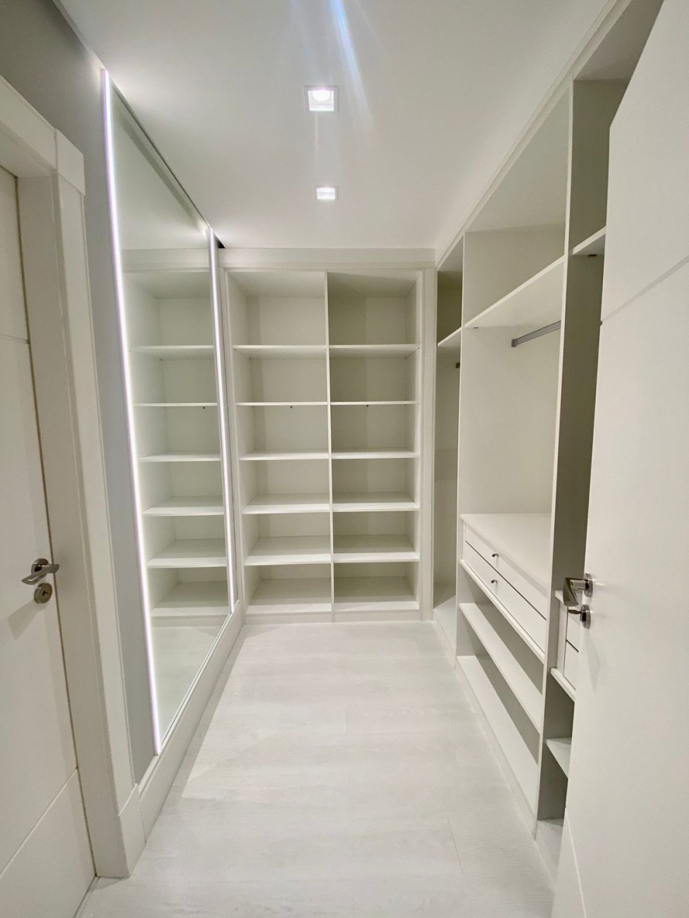 Existem opções de apartamentos duplex com pé direito duplo, quatro suítes e quatro vagas de garagem, além de apartamentos com três suítes e três vagas de garagem.