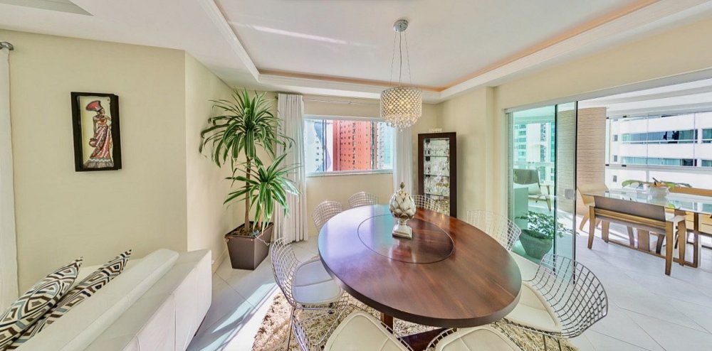 O apartamento no Edifício Petrópolis em Balneário Camboriú possui uma área privativa de 190m². Com três suítes, oferece espaço amplo e confortável para toda a família. Além disso, o imóvel conta com um amplo living, composto por sala de estar e sala de jantar, perfeito para receber visitas e desfrutar de momentos agradáveis.