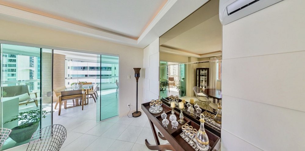Uma das principais características desse apartamento é a sacada com vista para o mar. Imagine poder apreciar a beleza da praia de Balneário Camboriú diretamente do conforto do seu lar. Além disso, a sacada também possui uma churrasqueira a carvão, ideal para reunir amigos e familiares em momentos de confraternização.