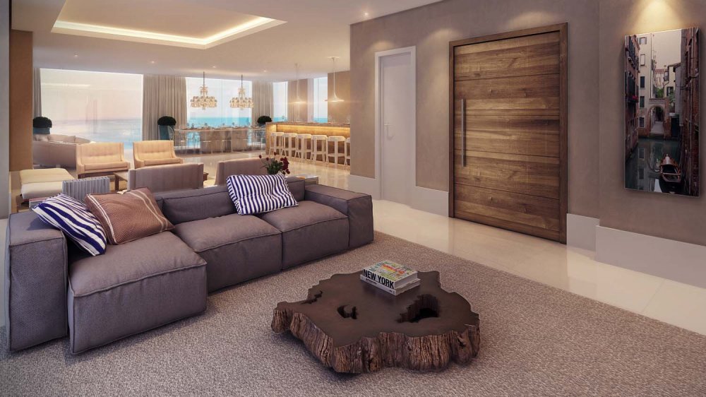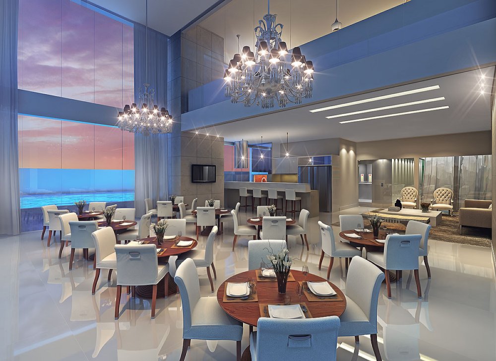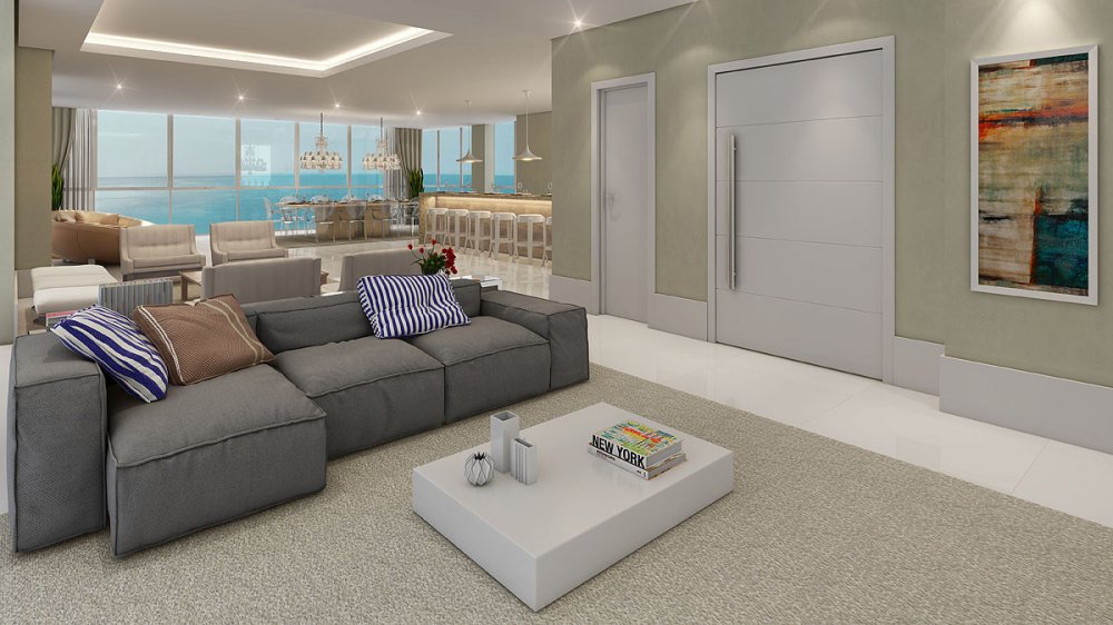 Os Apartamentos Tipo do Sky Tower são projetados com ambientes sociais totalmente integrados, proporcionando um espaço amplo e harmonioso. Cada apartamento conta com 4 suítes muito espaçosas, sendo uma delas a Suíte Master. A Suíte Master é o verdadeiro destaque, com um closet, uma sala de banho e uma vista deslumbrante para o mar. Imagine acordar todas as manhãs com essa vista deslumbrante!