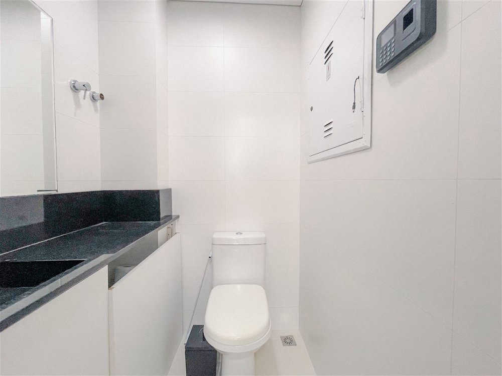 As características do apartamento incluem um living aconchegante, lavabo, cozinha bem planejada, área de serviço, banheiro de serviço e uma infraestrutura para água quente, que proporciona mais conforto nas tarefas diárias.