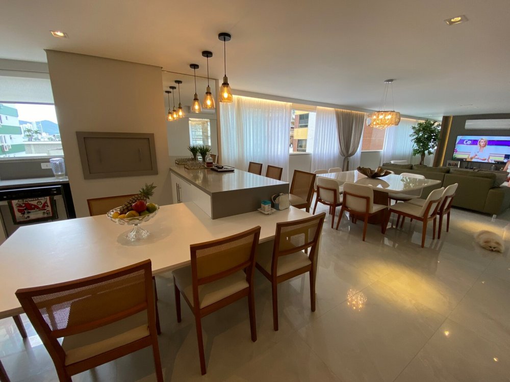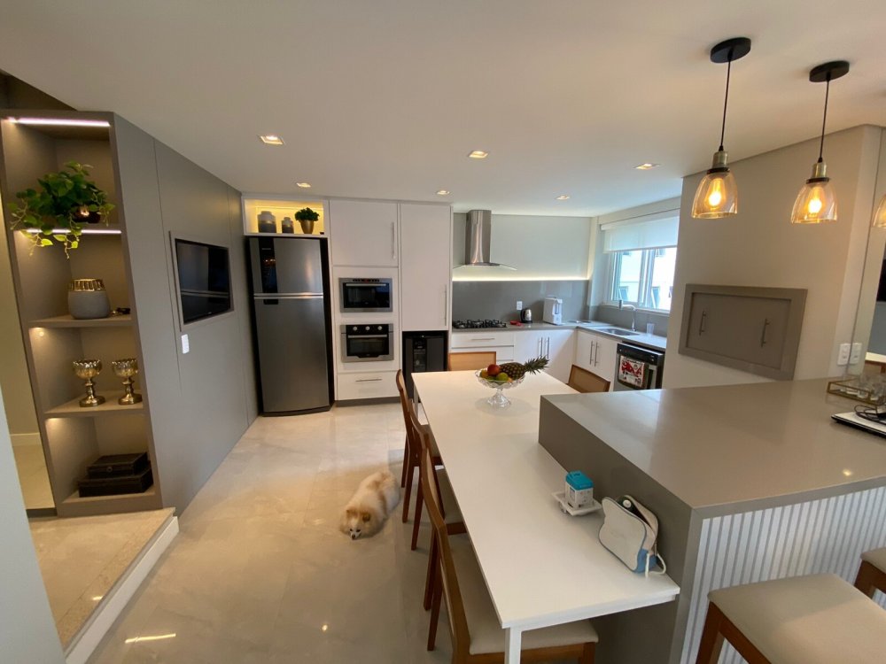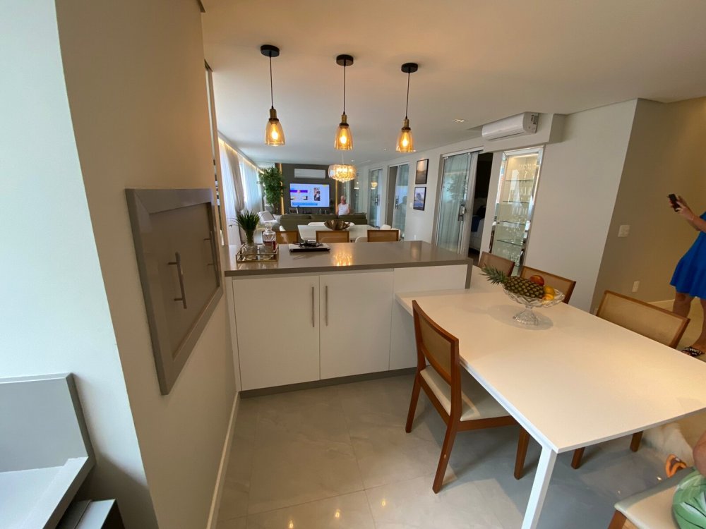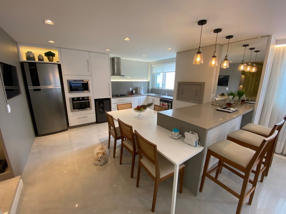 O destaque deste apartamento, no entanto, é o amplo espaço de convivência integrado. A sala de estar é um convite para momentos de descontração, enquanto a sala de jantar é perfeita para refeições memoráveis com amigos e familiares. A cozinha gourmet, equipada com churrasqueira a carvão e lava-louças, é o para é o paraíso de qualquer amante da culinária, onde é possível dar asas à criatividade e preparar pratos dignos de um chef.