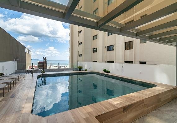 O apartamento em si é uma verdadeira obra-prima de design e conforto. Com uma área privativa de 300 m², este espaço generoso oferece 3 amplas suítes, sendo a suíte máster especialmente notável com seu closet espaçoso. O living, projetado para maximizar a vista para o mar, oferece não apenas beleza, mas também funcionalidade, com um home office integrado. A cozinha bem equipada, a área de serviço conveniente e o lavabo elegante completam a composição deste apartamento excepcional.