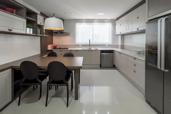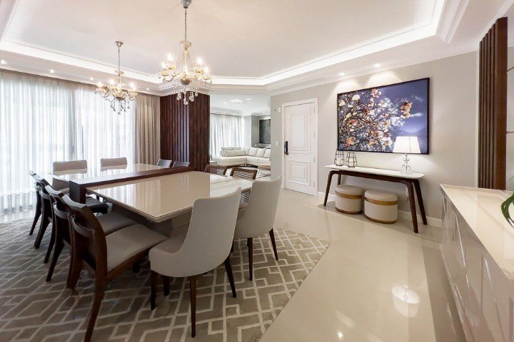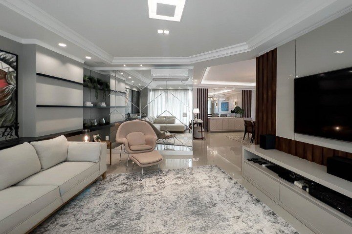 Um dos maiores destaques deste apartamento é o seu living integrado, que combina harmoniosamente a sala de estar e jantar, proporcionando um ambiente acolhedor e propício para reuniões familiares e confraternizações.