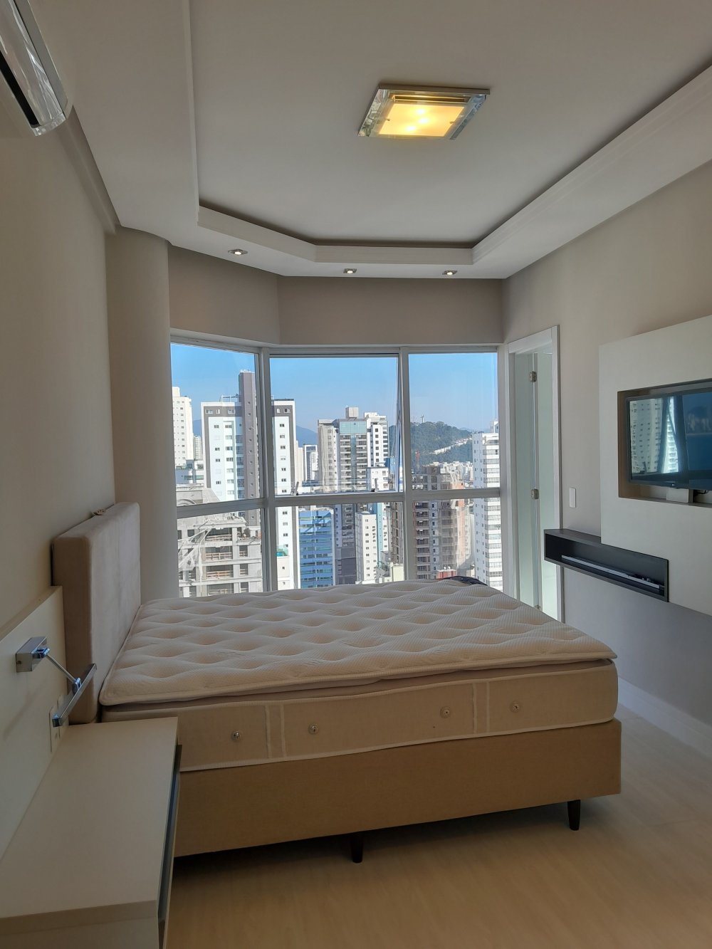Permita-se ser hipnotizado pela majestosa vista da cidade e do oceano ao se hospedar neste refinado apartamento. Situado em um andar alto, proporciona uma perspectiva única, onde os raios dourados do sol se misturam com o azul cristalino do mar.