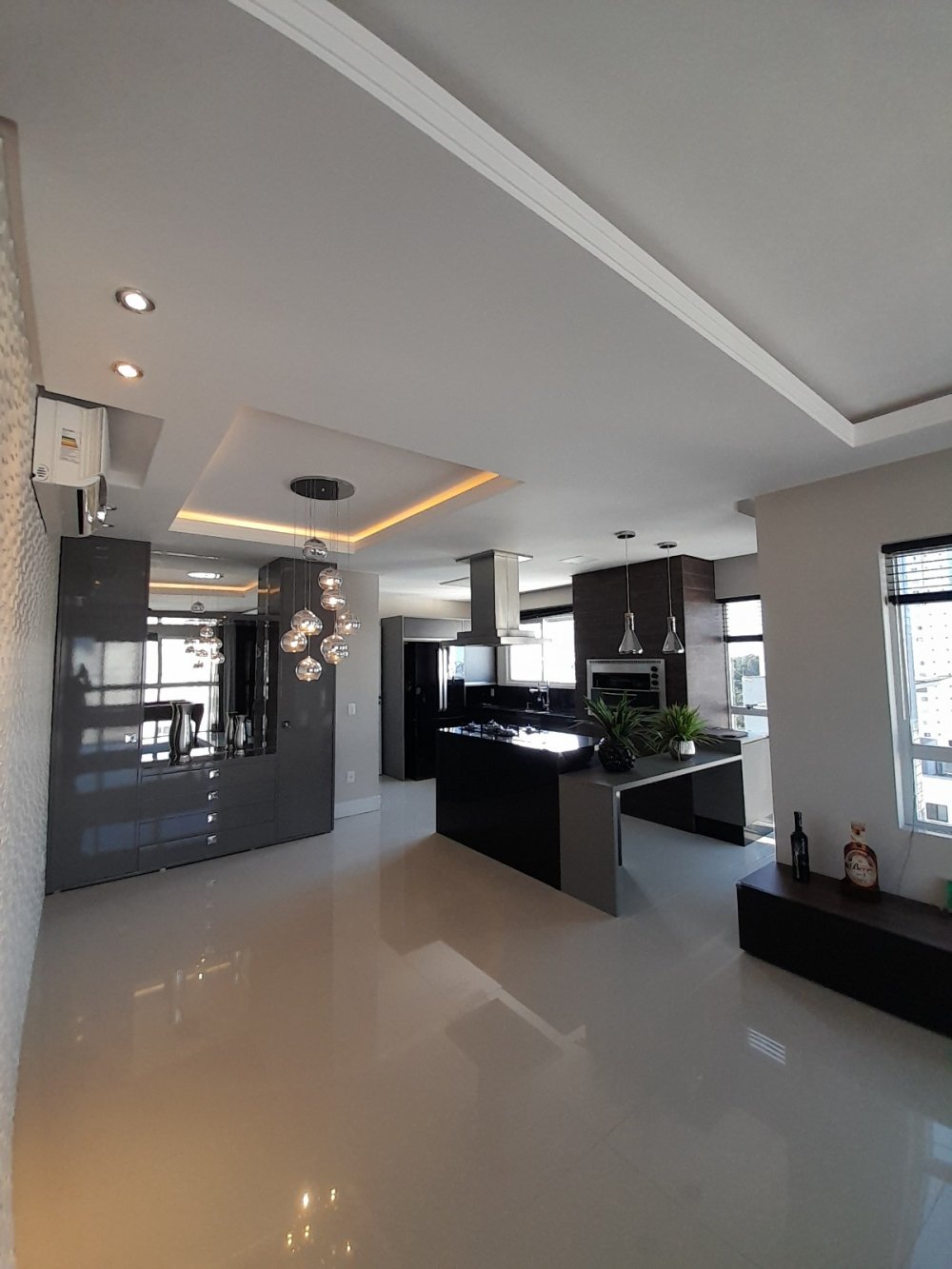 A elegância está em cada canto. Os móveis fixos, de design contemporâneo, combinam perfeitamente com os acabamentos de alto padrão. A cozinha americana, prática e funcional, é um convite para momentos culinários inesquecíveis.