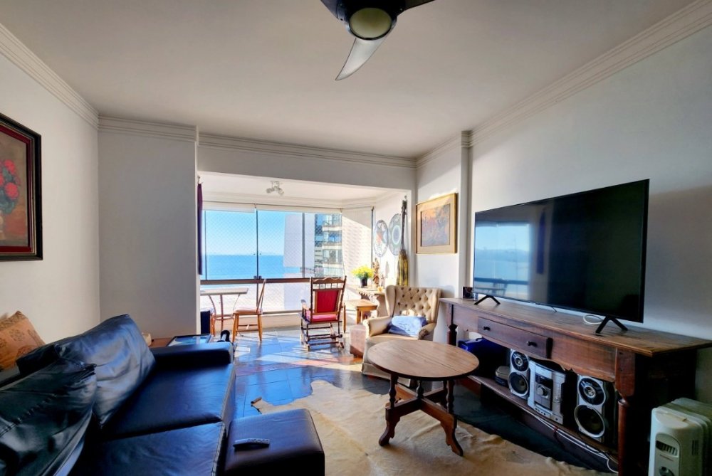 Apartamento de 198m² privativos, o Edifício Ilha de São Sebastião oferece espaços amplos e bem distribuídos. Cada unidade é composta por um living para 02 ambientes, sacada integrada com esquadrias de vidro e uma vista de tirar o fôlego para o mar. Além disso, as unidades contam com cozinha separada, área de serviço e dependência completa para funcionário. Na área íntima, encontramos 03 dormitórios, sendo 01 suíte máster de frente para o mar. E para quem se preocupa com estacionamento, o edifício disponibiliza 03 vagas de garagem no térreo.
