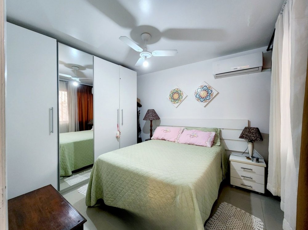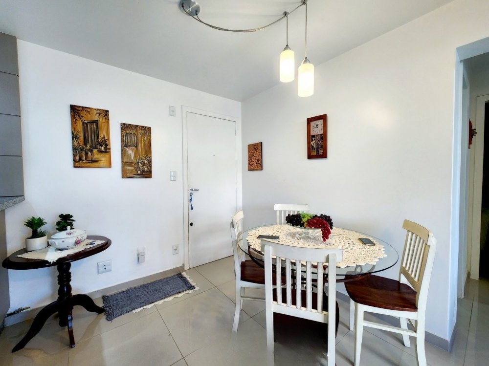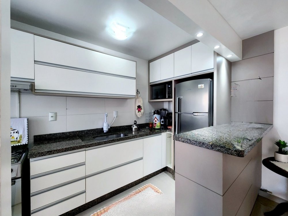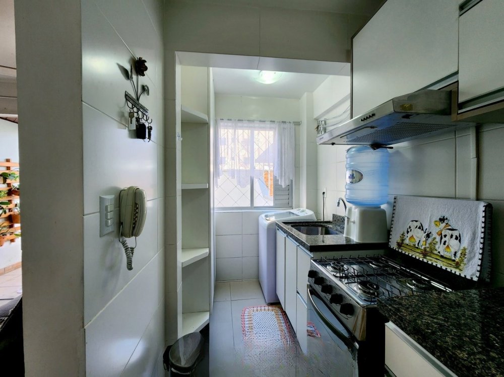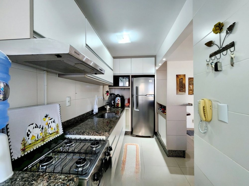 Na área íntima, você encontrará dois dormitórios aconchegantes e um banheiro social. O apartamento também dispõe de uma vaga de garagem privativa, embora seja importante notar que ela não acomoda veículos de grande porte.
