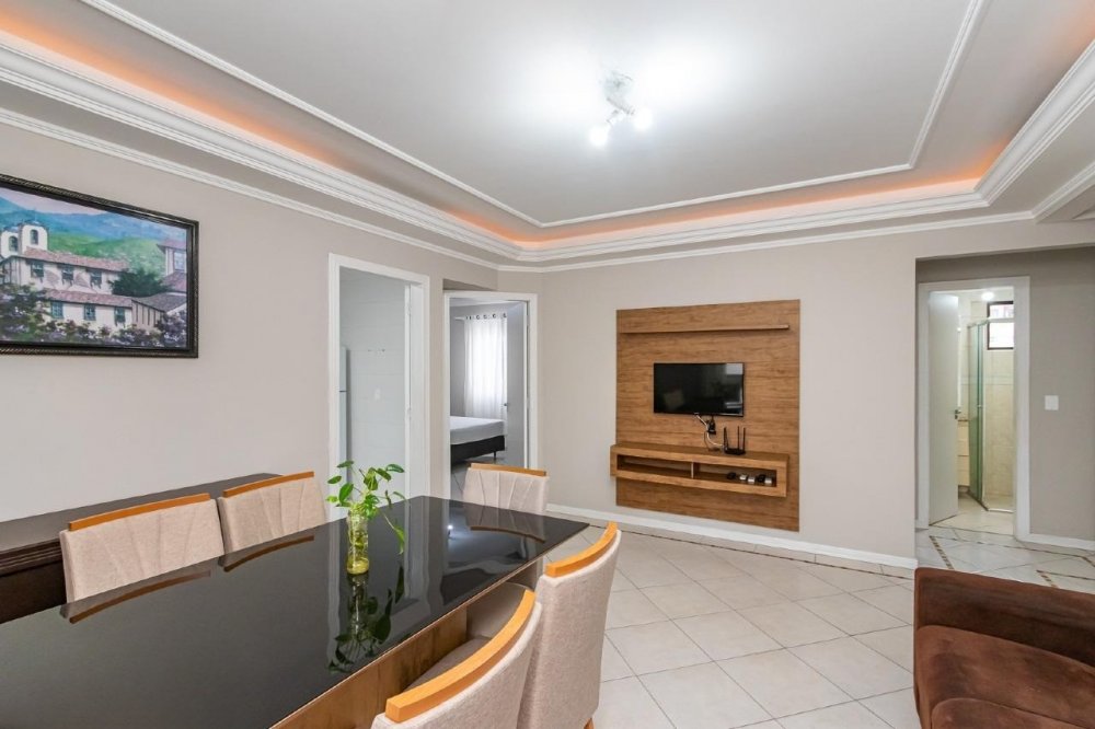 Com uma distribuição espaçosa, o apartamento possui uma suíte e dois dormitórios, garantindo espaço suficiente para acomodar sua família ou receber convidados com comodidade. A sala de estar e jantar proporciona um ambiente acolhedor para momentos de relaxamento e entretenimento.