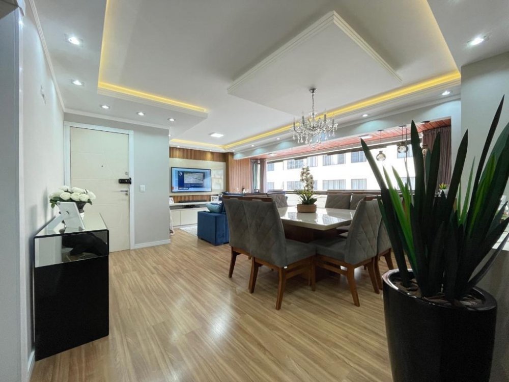 Com uma área de 90m², o apartamento é composto por uma suíte e mais dois dormitórios.