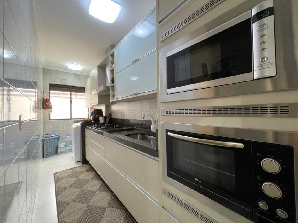 Além dos dormitórios, a cozinha planejada e a área de serviço são novíssimas. O living integrado oferece um ambiente harmonioso e agradável para reunir a família.