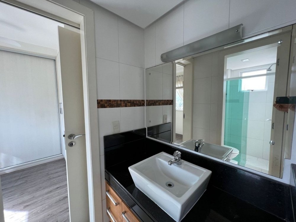 Com uma suíte master, complementada por duas demi-suítes, o apartamento foi meticulosamente projetado para maximizar o conforto. A sala de estar e jantar, expansiva em natureza, flui para uma sacada espaçosa, equipada com uma churrasqueira a carvão, tornando-se o cenário perfeito para reuniões íntimas ou celebrações.
