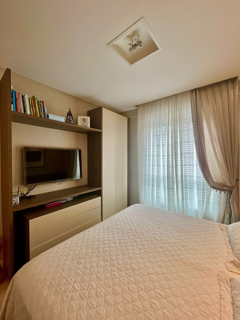 O apartamento não se destaca apenas pelos números. O conforto é garantido com acabamento em gesso, churrasqueira, porcelanato, ar condicionado, móveis planejados, e diversos outros detalhes pensados para proporcionar uma experiência única.