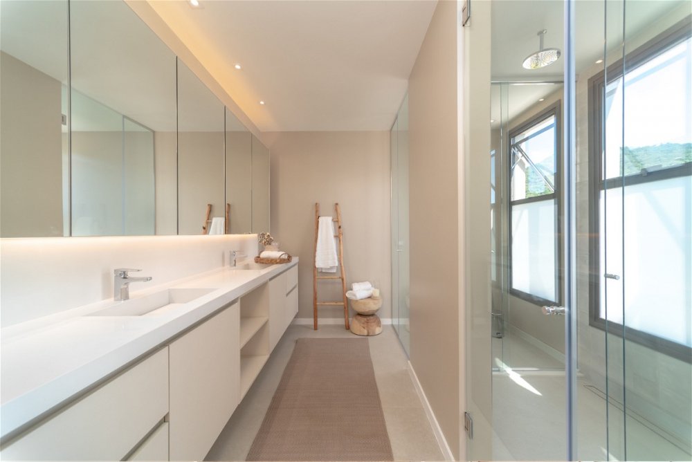 O pavimento superior abriga 2 suítes de frente para o mar, cada uma com uma ampla sacada, um estar íntimo e outros elementos que elevam o conforto e a elegância da residência.