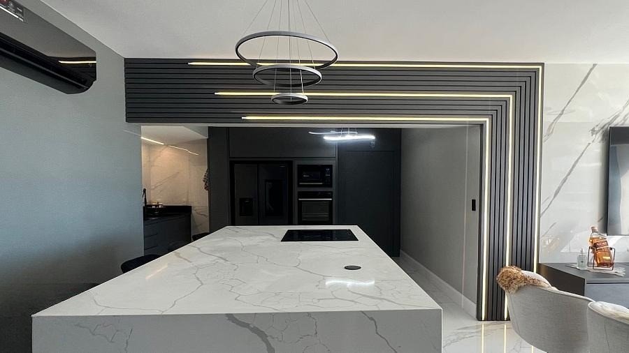 Ao entrar, você será recebido por um ambiente mobiliado em alto nível, com camas queen e king size, banheiros revestidos em porcelanato 120x120, cubas esculpidas em ônix cristalo, e sanitários monobloco de luxo. A automação da iluminação, televisores e ar condicionados proporciona um toque de modernidade, complementado por móveis sob medida de alto padrão.