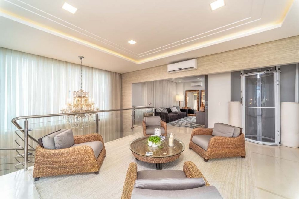Com 740m² de puro requinte, esta cobertura oferece espaço generoso para viver com conforto e sofisticação. Destaque para a distribuição inteligente em duas lajes, garantindo ambientes amplos e estrategicamente planejados.