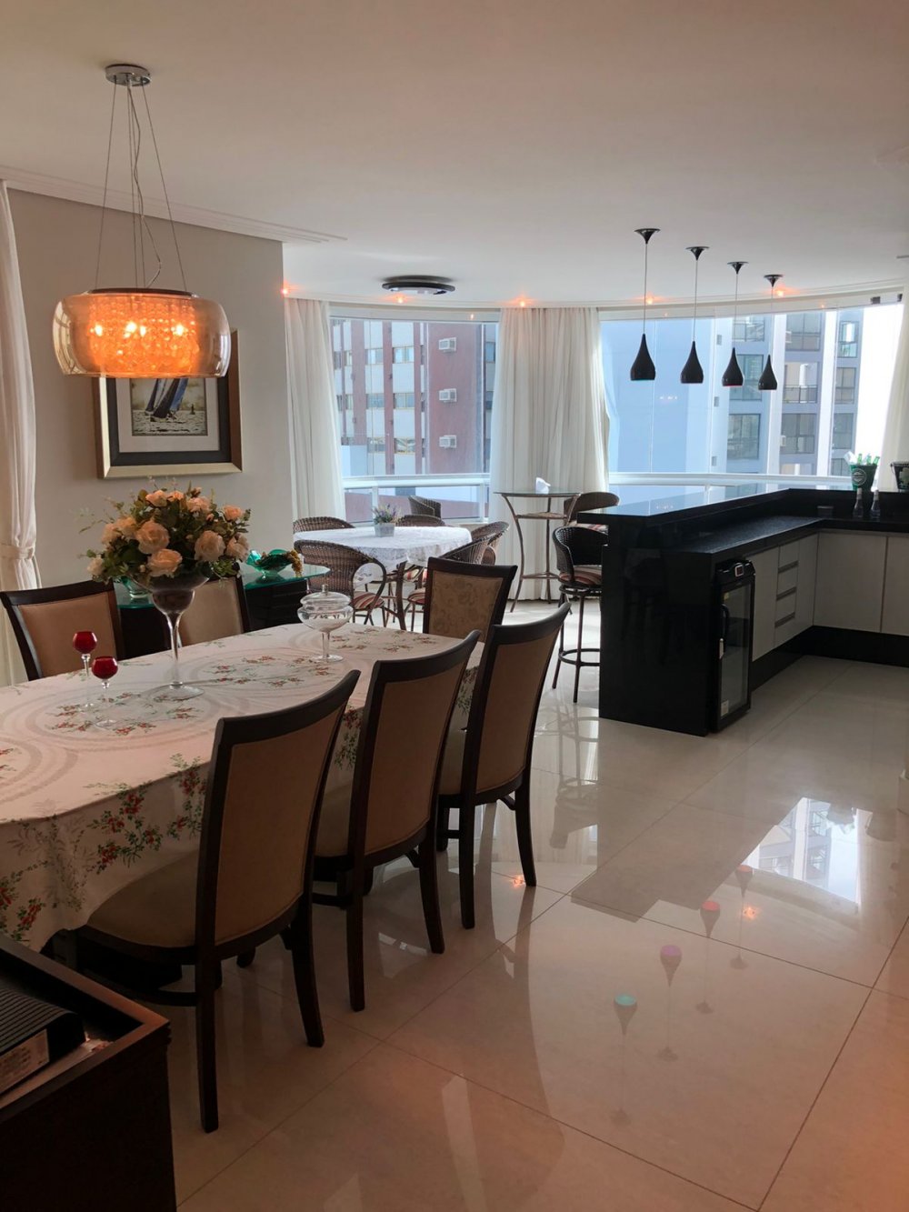 O apartamento à venda no edifício Costa Del Mare Residence tem uma área privativa de 170,81m². Ele conta com 4 dormitórios, sendo 2 suítes e 2 demi-suítes, lavabo social, sala com 03 ambientes integrados, cozinha com churrasqueira a carvão, área de serviço individual e 03 vagas de garagem privativas. O apartamento é mobiliado e tem uma vista linda para o mar.
