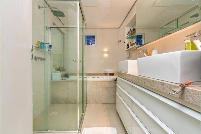 A cobertura tem três suítes, incluindo uma suíte master com hidromassagem e closet.