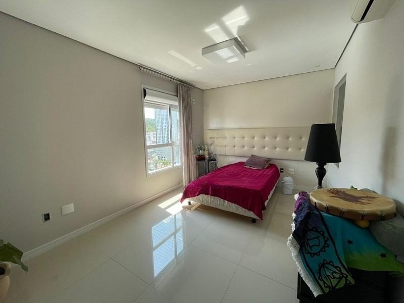 No segundo andar, a suíte master é o destaque. Com banheira de hidromassagem e closet, é um verdadeiro refúgio de luxo. A vista panorâmica da cidade e do mar completa a experiência única proporcionada por esta cobertura.