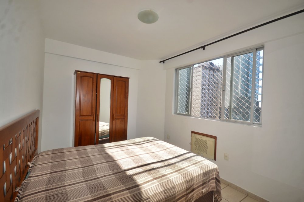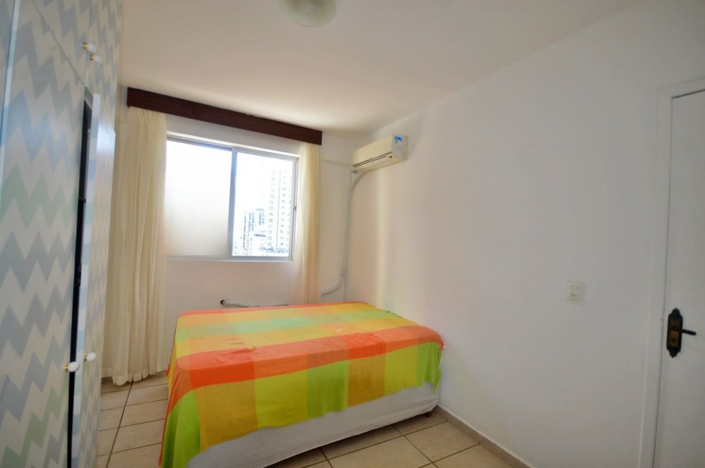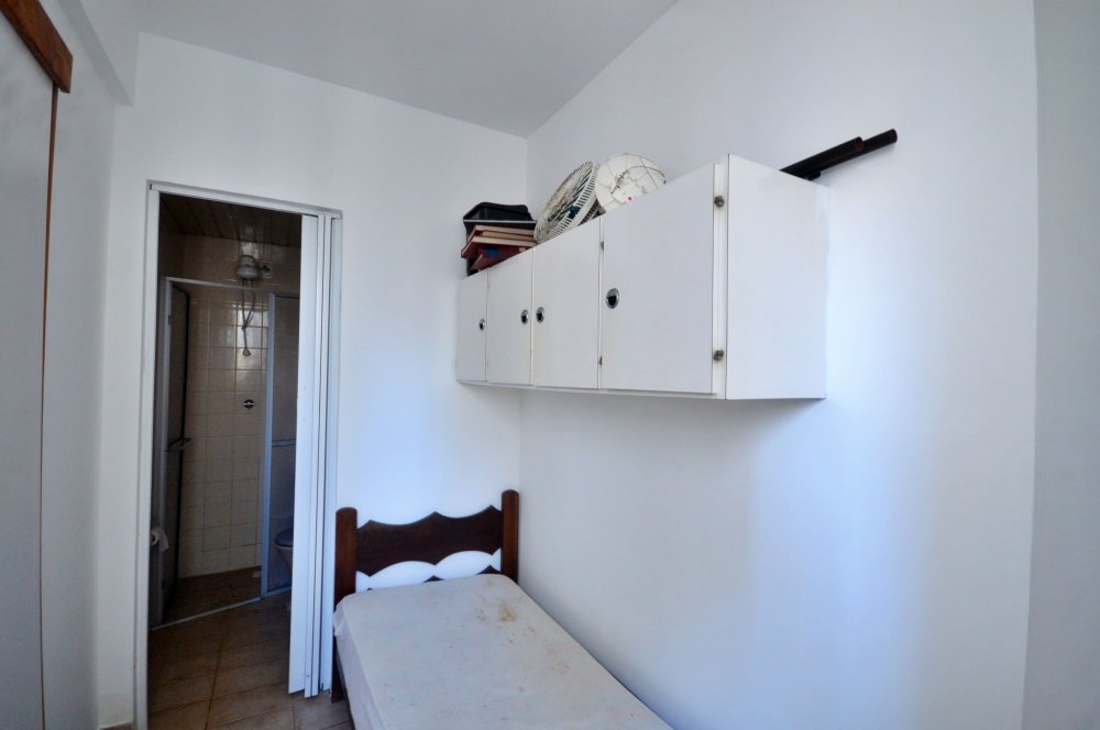 O apartamento em questão oferece dois quartos (ambos com ar condicionado) além de uma dependência com banheiro, proporcionando espaço suficiente para acomodar confortavelmente toda a família. Além disso, encontra-se semi mobiliado, com um amplo banheiro social, box de praia e garagem privativa, proporcionando praticidade e comodidade aos moradores.