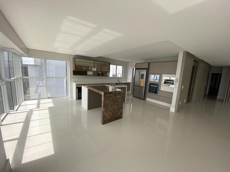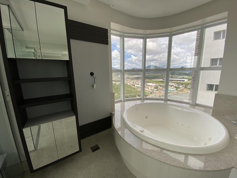 O apartamento no Edifício Ibiza Towers, com 237 m², é a síntese do luxo em Balneário Camboriú. Ao entrar, você encontra um hall elegante com acabamento em mármore. O living room e a sala de jantar são amplos e bem iluminados, com janelas que oferecem uma vista panorâmica do mar. A cozinha gourmet é moderna, com eletrodomésticos de última geração e bancadas em granito. A área de serviço inclui lavanderia e acesso à dependência de empregada. São quatro suítes espaçosas, todas com ar-condicionado e banheiros privativos. A master suite possui 42 m², um closet generoso, sacada privativa com vista para o mar e um banheiro luxuoso com banheira de hidromassagem. A varanda gourmet, com churrasqueira, é perfeita para relaxar e apreciar a vista deslumbrante.