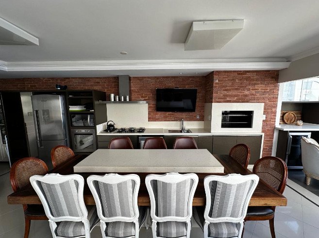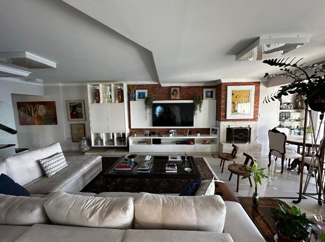 Com uma área privativa de 249,61 m² e área total de 344,42 m², este imóvel é perfeito para quem busca espaço e conforto. São 4 dormitórios, sendo 4 suítes, 5 banheiros e 3 vagas de garagem, living amplo e confortável, móveis planejados, área de serviço, ar condicionado, varanda com churrasqueira e vista panorâmica.