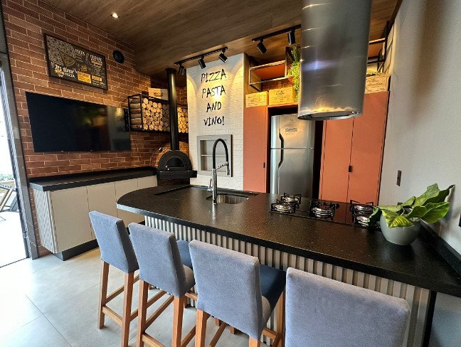 A cobertura duplex oferece uma área de serviço espaçosa, acabamento em gesso elegante, uma churrasqueira moderna, pisos em porcelanato, acessibilidade para PNE, ampla varanda, sala de jantar integrada à cozinha americana, vista panorâmica deslumbrante e gás individual, e uma piscina privativa proporcionando o máximo de conforto e praticidade para você e sua família.